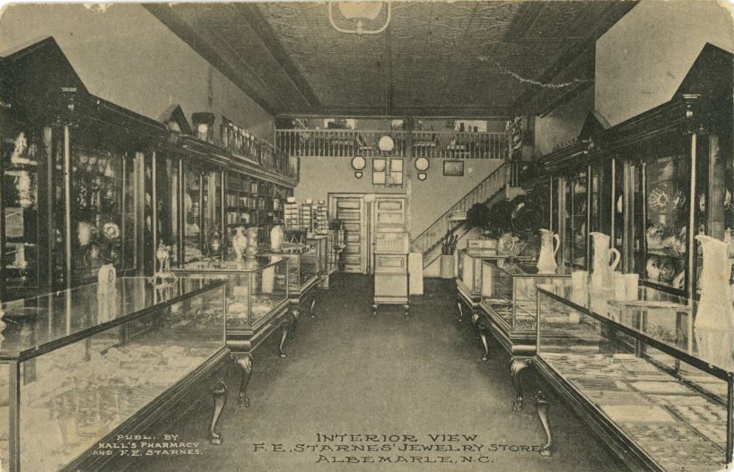 Even though our store is brand new, our family has a long history in the jewelry business. During the 1890’s, my wife Pat’s grandfather, F.E. Starnes Sr., began working for W. S. Krause at a jewelry store in Monroe. Starnes then moved to Albemarle in the fall of 1898 and opened what later became known as Starnes Jewelry Store.